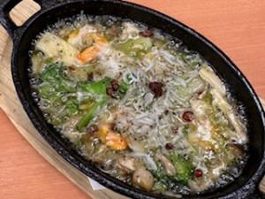 エビとしらすのアヒージョ 690円